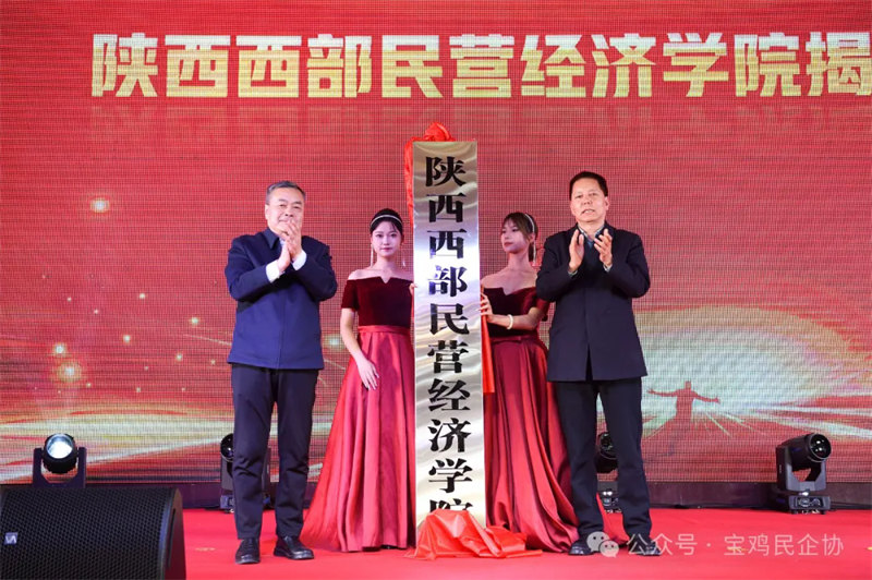 省個私協會會長任軍寧、市政協常務副主席張德科為陜西西部民營經濟學院揭牌